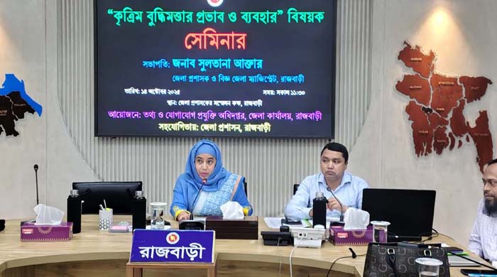 রাজবাড়ীতে ‘কৃত্রিম বুদ্ধিমত্তার প্রভাব ও ব্যবহার’ বিষয়ক সেমিনার গতকাল ১৪ই অক্টোবর দুপুরে কালেক্টরেটের সম্মেলন কক্ষে জেলা তথ্য ও যোগাযোগ প্রযুক্তি অধিদপ্তরের আয়োজনে ও জেলা প্রশাসনের সহযোগিতায় সেমিনার অনুষ্ঠিত হয়।